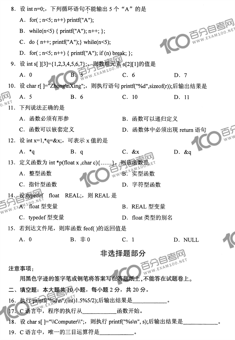 Copyright©2018-2023 百分自考网(Www.Exam100.Net)