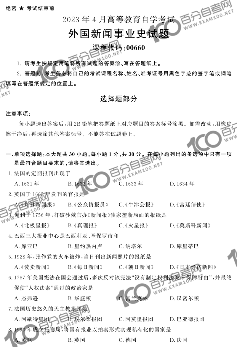 Copyright©2018-2023 百分自考网(Www.Exam100.Net)