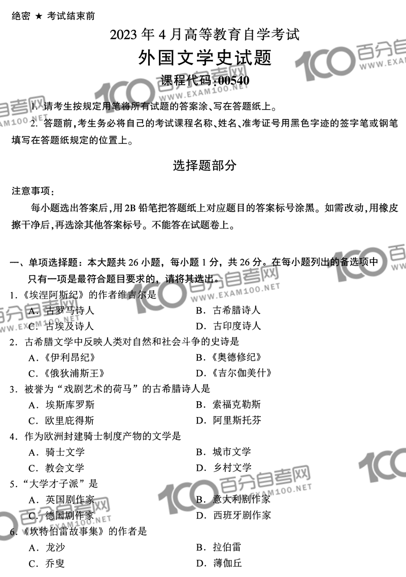 Copyright©2018-2023 百分自考网(Www.Exam100.Net)